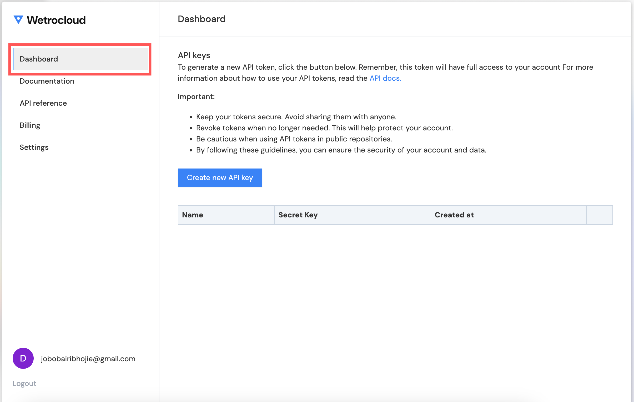 - Copy the generated API key and store it securely.